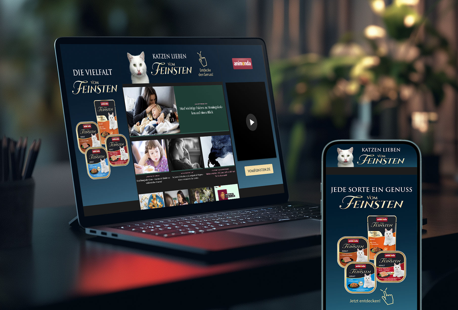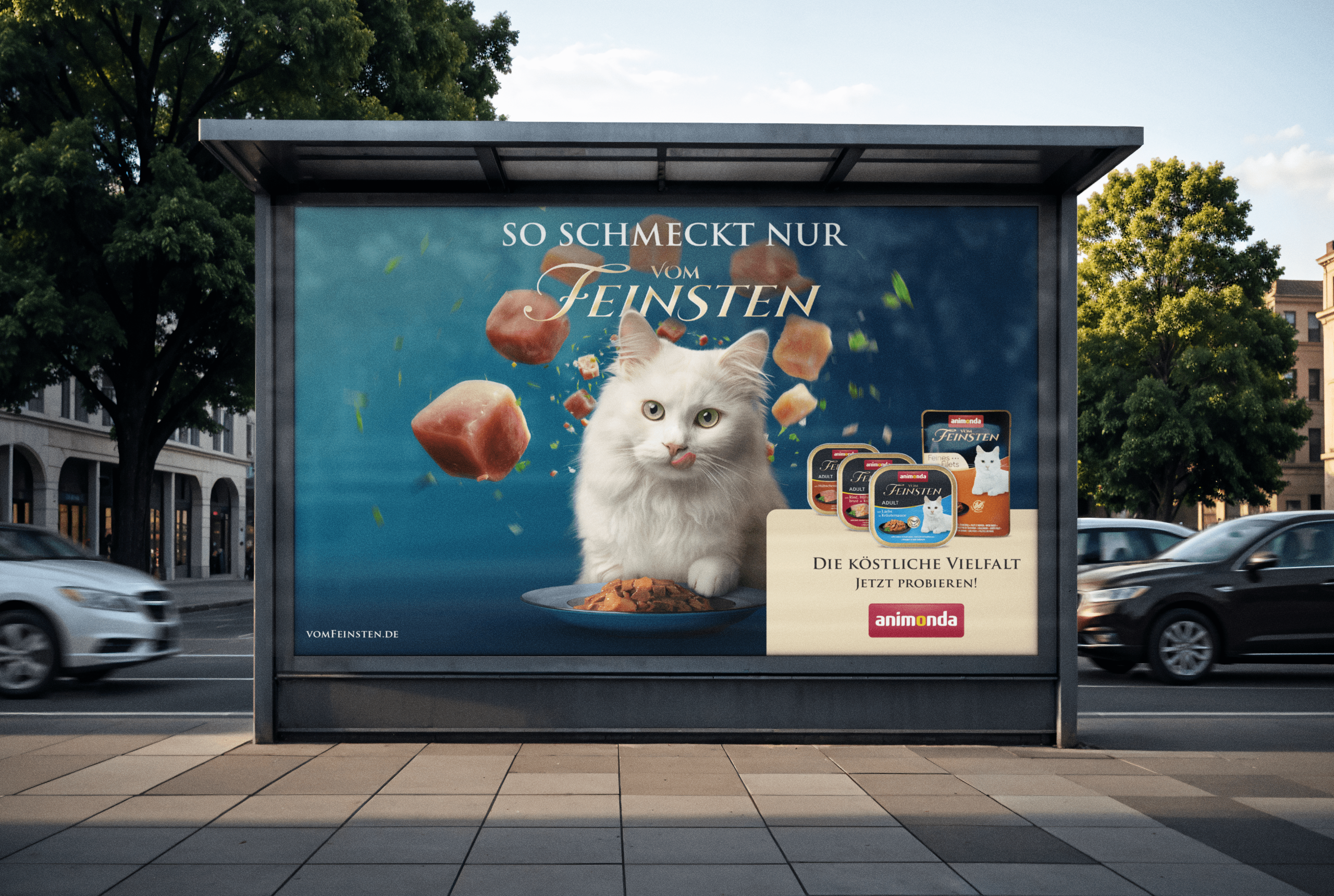 Was geht einer Katze durch den Kopf, wenn sie sich das Gourmetfutter animonda Vom Feinsten schmecken lässt? Die Antwort liefert die Vom Feinsten Kampagne, die Zuschauer*innen in den Kopf der Katze mitnimmt, wenn sie die Geschmackswelt dieses Futters erlebt. Frische Zutaten finden bildgewaltig zusammen und lösen eine wahre Geschmacksexplosion aus.