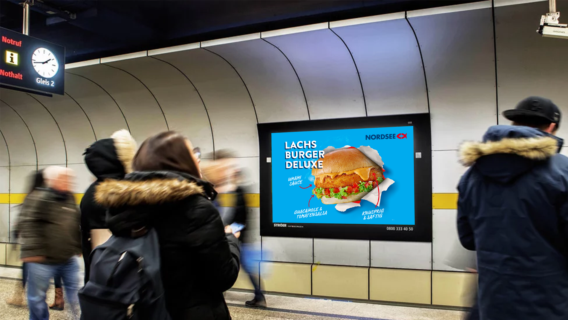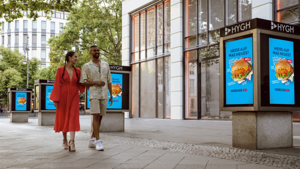 Außenwerbung in ausgewählten Großstädten, um die neuen NORDSEE Produkte im wahrsten Sinne in aller Munde zu bringen.